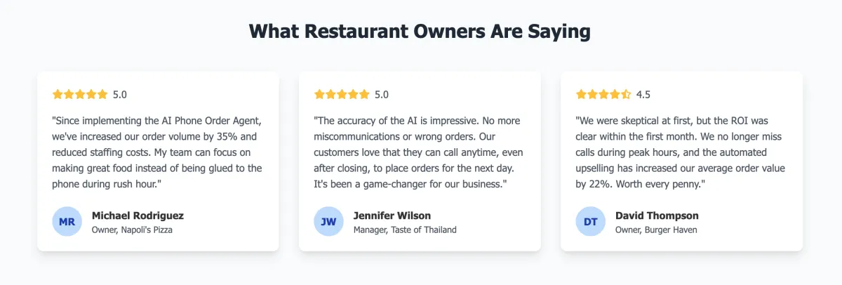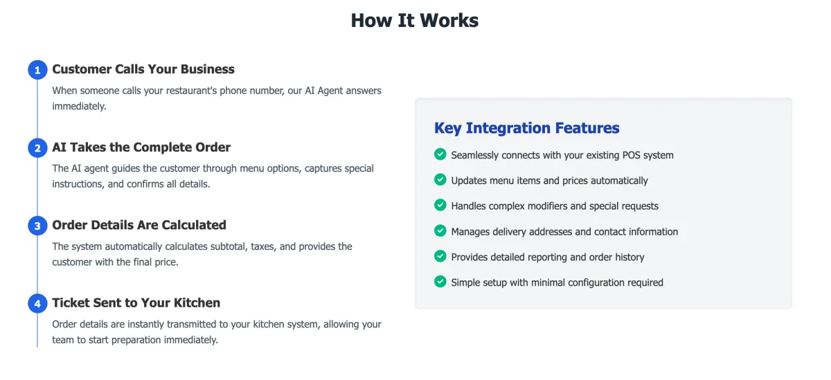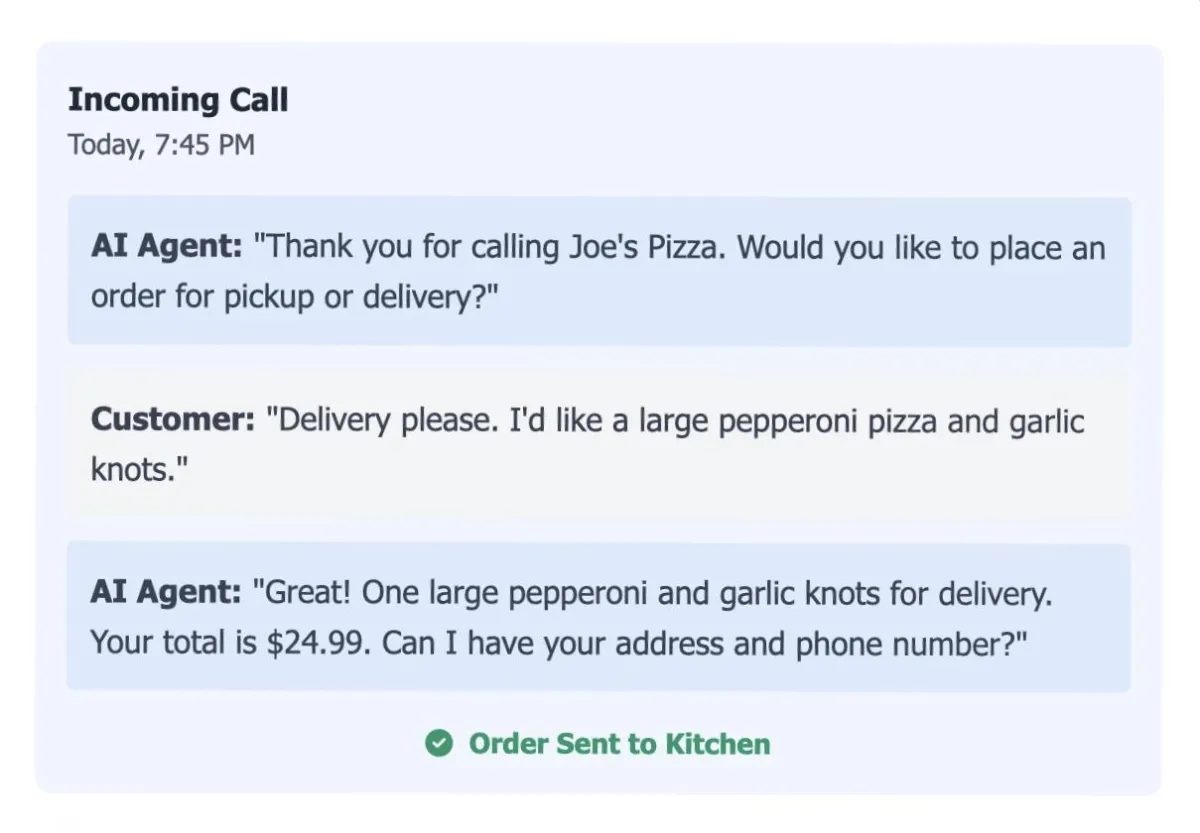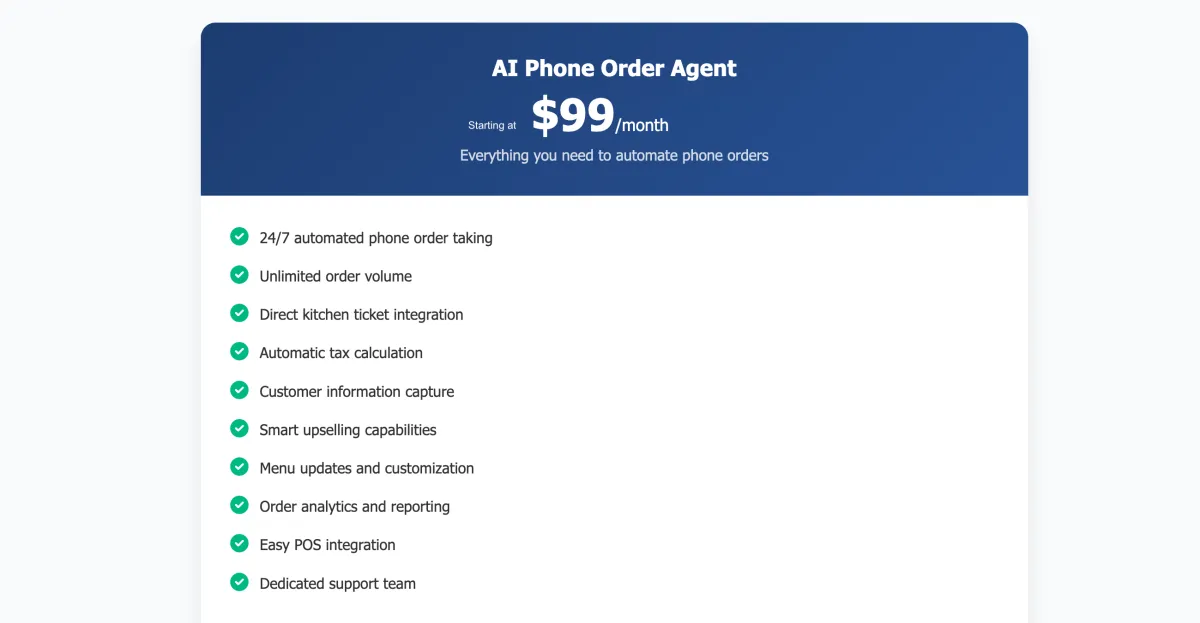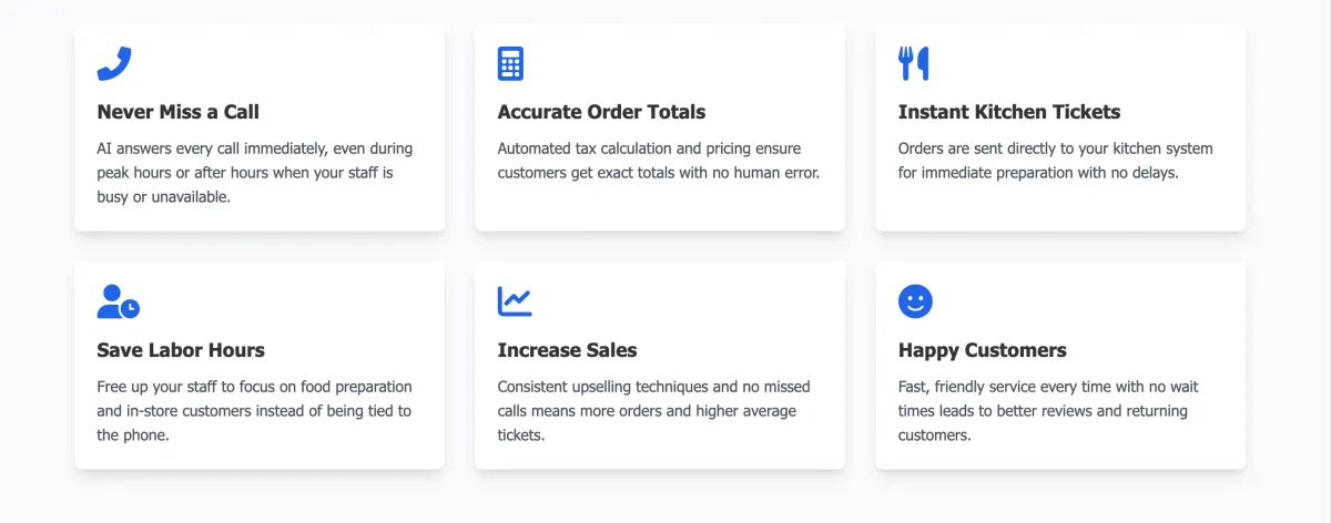 Our AI Phone Order Agent answers every call 24/7, captures orders word for word, offers additional items,